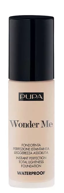 Podkład do twarzy Pupa Wonder Me pięknie ujednolica koloryt skóry. Wodoodporna formuła zapewnia długotrwały efekt. Podkład Pupa ma lekką, płynną formułę, co ułatwia aplikację produktu. Kosmetyk daje efekt pięknie wygładzonej, naturalnie wyglądającej cery. Lekka formuła sprawia, że preparat można stosować do cery wrażliwej, a także suchej i tłustej. To naprawdę kosmetyk do zadań specjalnych, odpowiedni na każdą porę roku. W składzie nie ma alkoholu, olejów, parabenów. Produkt testowany klinicznie i dermatologicznie.