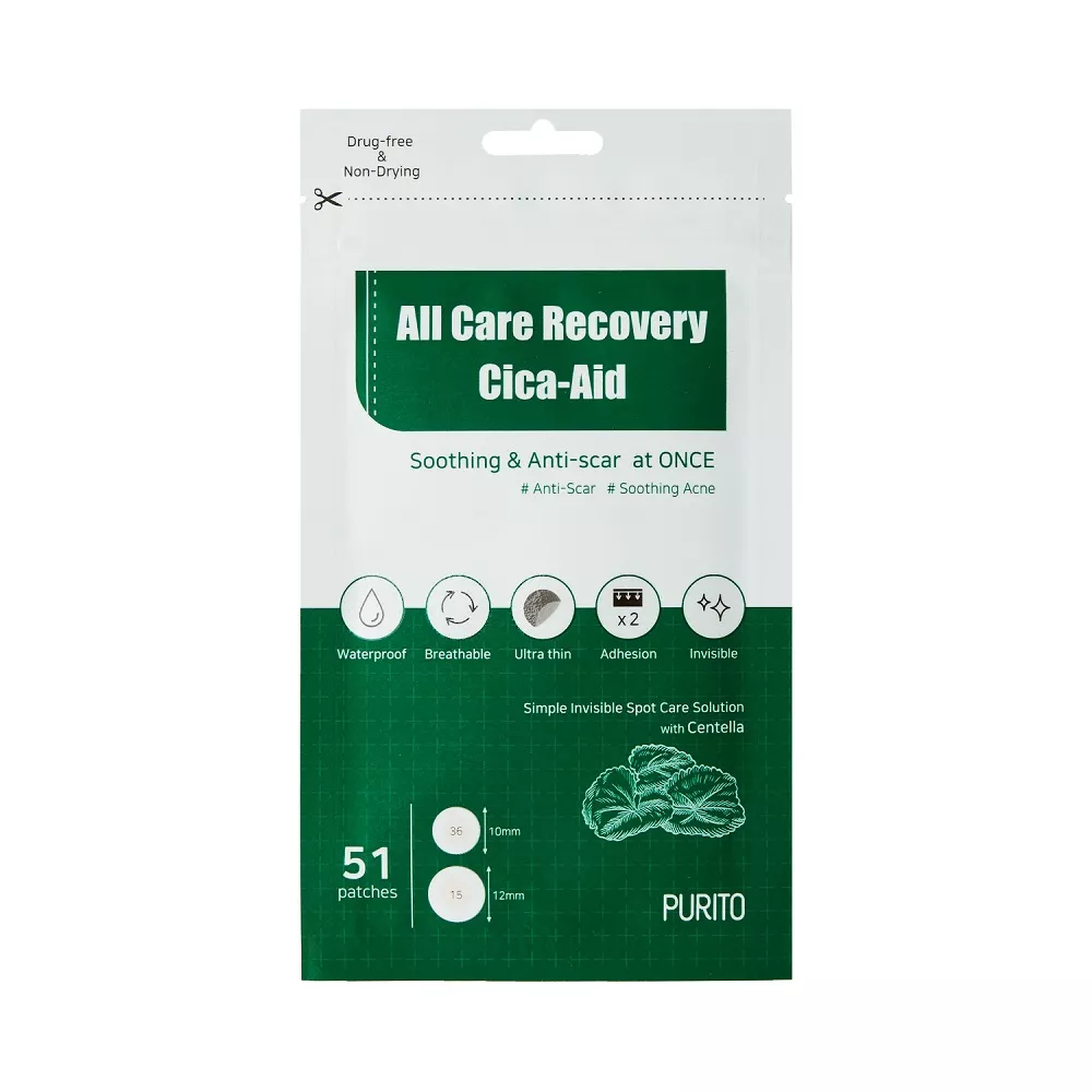 Purito All Care Recovery Cica-Aid – plasterki na niedoskonałości, które pomogą Ci zadbać o skórę i zapomnieć o problemach z trądzikiem.