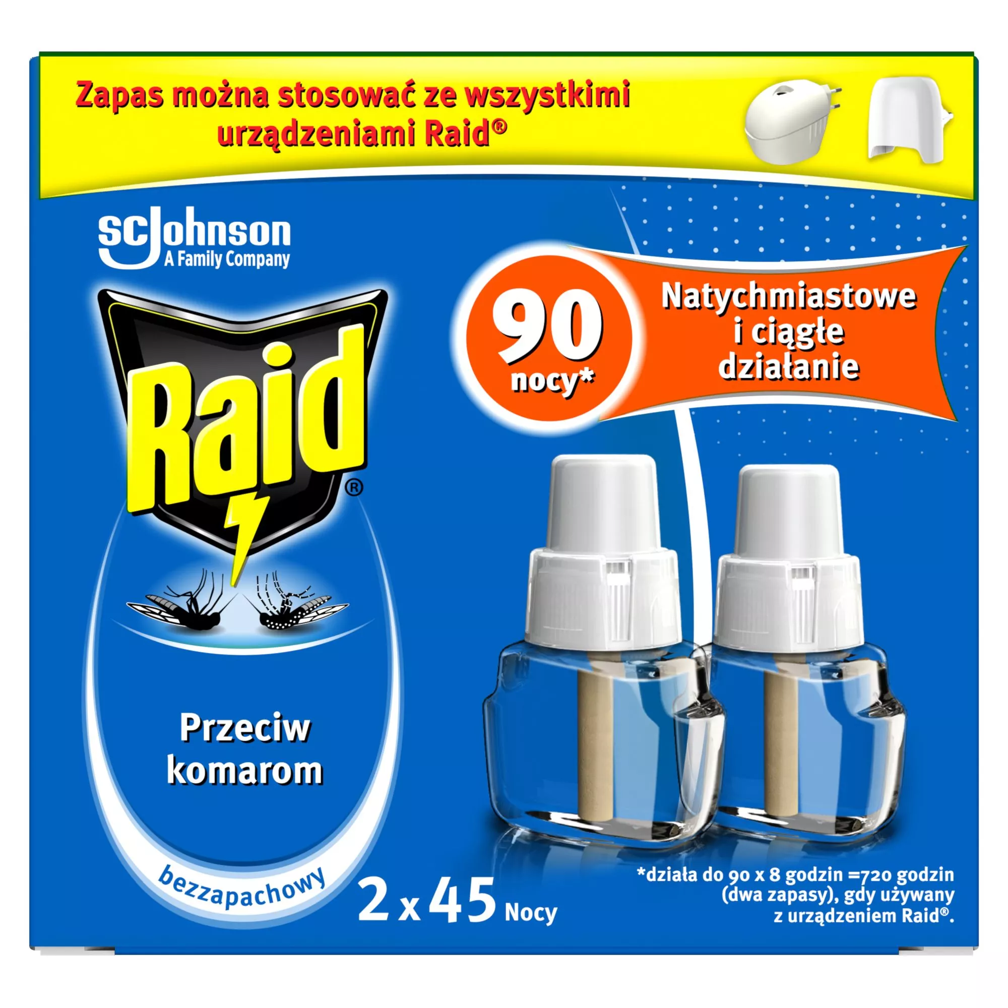 Raid, płyn owadobójczy przeciw komarom, bezzapachowy, zapas podwójny, 90 nocy, 1szt.