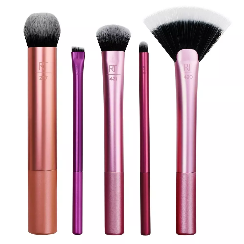 Zestaw Real Techniques Artist Essentials to komplet pięciu pędzli do makijażu oczu, ust i twarzy, który pozwala wykonać nieskazitelny i pełny makijaż, ciesząc się pięknym wyglądem. Pędzle zostały wykonane z najwyższej jakości syntetycznych włókien, co sprawia, że są niezwykle miękkie w dotyku i doskonale sprawdzają się podczas rozprowadzania i blendowania kosmetyków, zarówno płynnych, jak i sypkich.