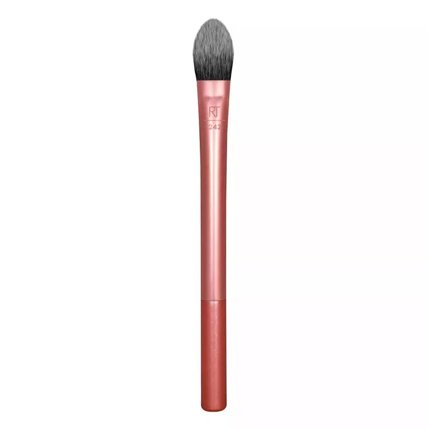 Real Techniques Brightening Concealer to pędzelek zaprojektowany specjalnie do aplikacji korektorów w płynie i kremie. Jego profesjonalny kształt umożliwia precyzyjne zakrycie niedoskonałości oraz cieni pod oczami, a także rozświetlenie wybranych obszarów twarzy.
