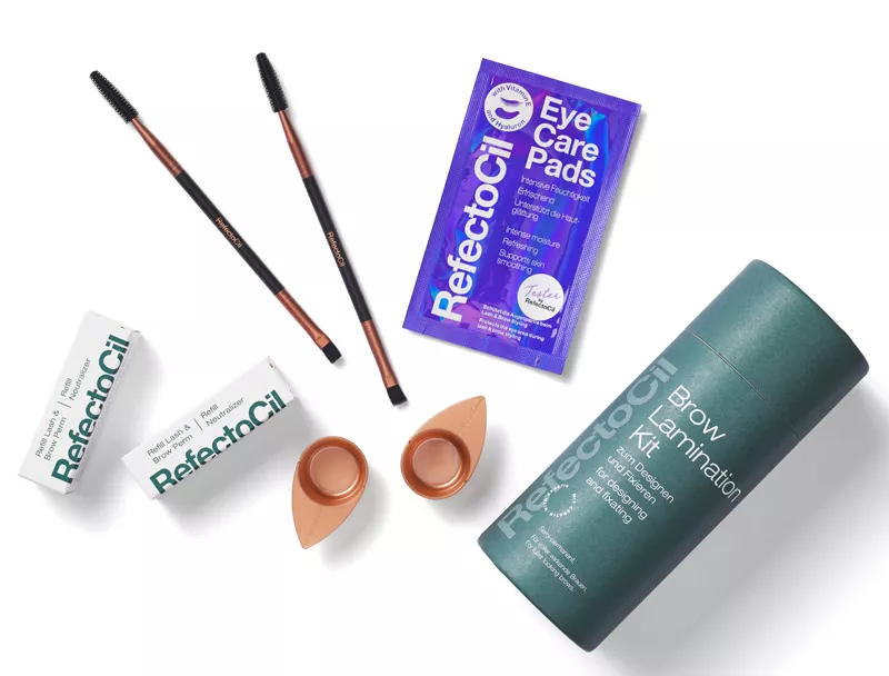 Gotowy zestaw do laminacji brwi Refectocil Lamination Kit pozwoli Ci uzyskać efekt zdefiniowanych i uniesionych brwi na długo. Ponadto zakrywa luki po zbytnim wyskubaniu brwi. Zestaw jest odpowiedni do każdego rodzaju brwi, również tych krzaczastych. Zestaw Refectocil pozwala na wykonanie 15 zabiegów. Specjalna formuła Pink Power Perm pozwala skrócić czas ekspozycji. Dzięki zawartości keratyny podczas zabiegu wzmacniane są również włókna włosków.