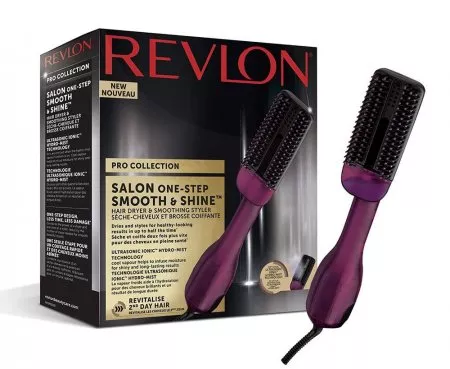 Szczotka z emisją pary Revlon łączy w sobie zalety szczotki i suszarki. Z jednej strony szybko suszy włosy, a z drugiej sprawia, że są gładkie i lśniące. Urządzenie jest również idealne do odświeżania fryzury w ciągu dnia. Szczotka daje możliwość włączania/wyłączania efektu pary wodnej oraz włączania zimnej mgiełki.