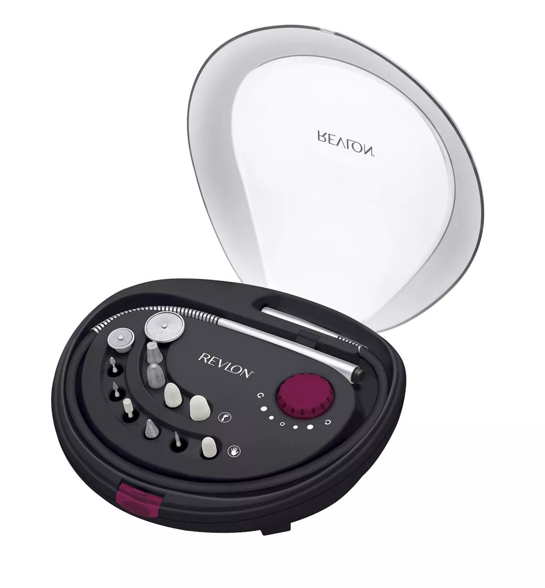Profesjonalny zestaw do paznokci Revlon Ultimate Gam Manicure Set jest idealny do codziennej pracy. Zestaw zawiera 12 części. Wysokiej jakości frezarka posiada regulację obrotów w zakresie 3000-1800 obr./min. Rotacja stożka w obie strony to zdecydowanie zaleta tego urządzenia. W zestawie znajdziesz końcówki do pielęgnacji paznokci stóp oraz dłoni. Urządzenie umieszczone jest w praktycznym etui.