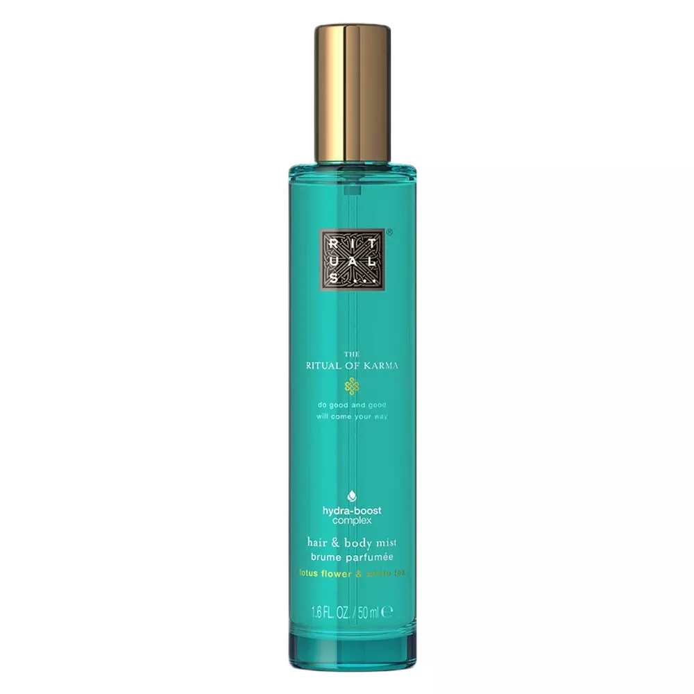 Otul się pozytywnymi wibracjami lata dzięki mgiełce do włosów i ciała The Ritual of Karma! Idealna dla wrażliwej skóry, bezalkoholowa mgiełka nie pozostawia plam na tkaninach, a także ujarzmia niesforne włosy. Formuła z kwiatem lotosu, białą herbatą i wyjątkowym kompleksem Hydra-Boost doskonale odświeża i nawilża ciało, a dzięki zawartości antystatycznej betainy wygładza i odżywia włosy. Połącz mgiełkę z innymi produktami z kolekcji The Ritual of Karma, aby dłużej cieszyć się latem.