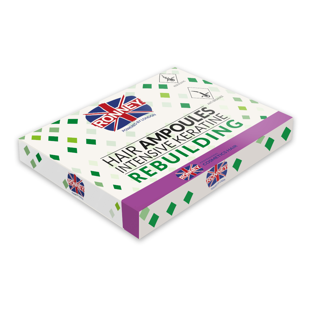 Intensywna kuracja odbudowująca Ronney sprawi, że włosy będą wzmocnione oraz odporniejsze na uszkodzenia. Formuła oparta na właściwościach keratyny wnika w głąb włosa, działając od środka. Ampułki do włosów Ronney przeznaczone są jako wsparcie codziennej pielęgnacji włosów każdego rodzaju, zwłaszcza suchych i zniszczonych. Stosowanie regularne ampułek zmniejszy łamliwość włosów, ułatwi ich rozczesywanie i poprawi ich kondycję.
