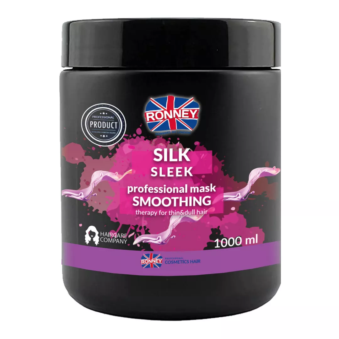 RONNEY Professional Mask Smoothing Silk Sleek to maska wygładzająca stworzona z myślą o włosach cienkich i matowych. Dzięki niej zapomnisz o problemie puszących się pasm. Kosmetyk oparty jest na jedwabiu, który nie tylko skutecznie wygładza włosy, ale także przywraca im optymalny poziom nawilżenia i dodaje spektakularnego blasku. Po zastosowaniu maski Ronney Smoothing Silk Sleek, włosy nie puszą się, nie plączą i chętnie współpracują.
