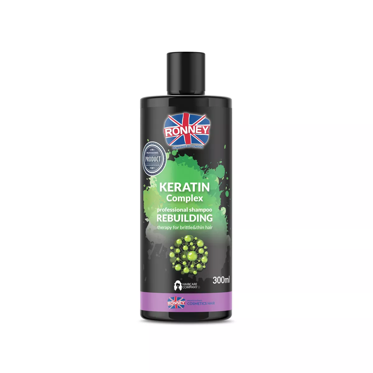 Ronney Professional Shampoo Keratin Complex Rebuilding Therapy to szampon odbudowujący stworzony specjalnie dla włosów kruchych i cienkich. Dzięki zawartemu w składzie kompleksowi keratynowemu, szampon doskonale regeneruje i nawilża włosy, poprawiając ich kondycję. Kosmetyk odżywia i chroni włosy, nadając im miękkość i jedwabistość w dotyku.