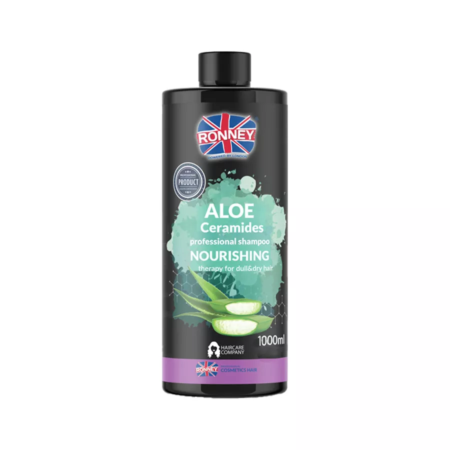RONNEY Professional Shampoo Nourshing Aloe Ceramides to szampon nawilżający przeznaczony do włosów matowych i suchych. Dzięki swojej unikalnej formule doskonale odżywia, nawilża i odbudowuje barierę lipidową włosów, sprawiając, że stają się one sprężyste, nawilżone i elastyczne. Kluczowym składnikiem są ceramidy, które działają jak cement, zapewniając włosom zdrowy blask każdego dnia.