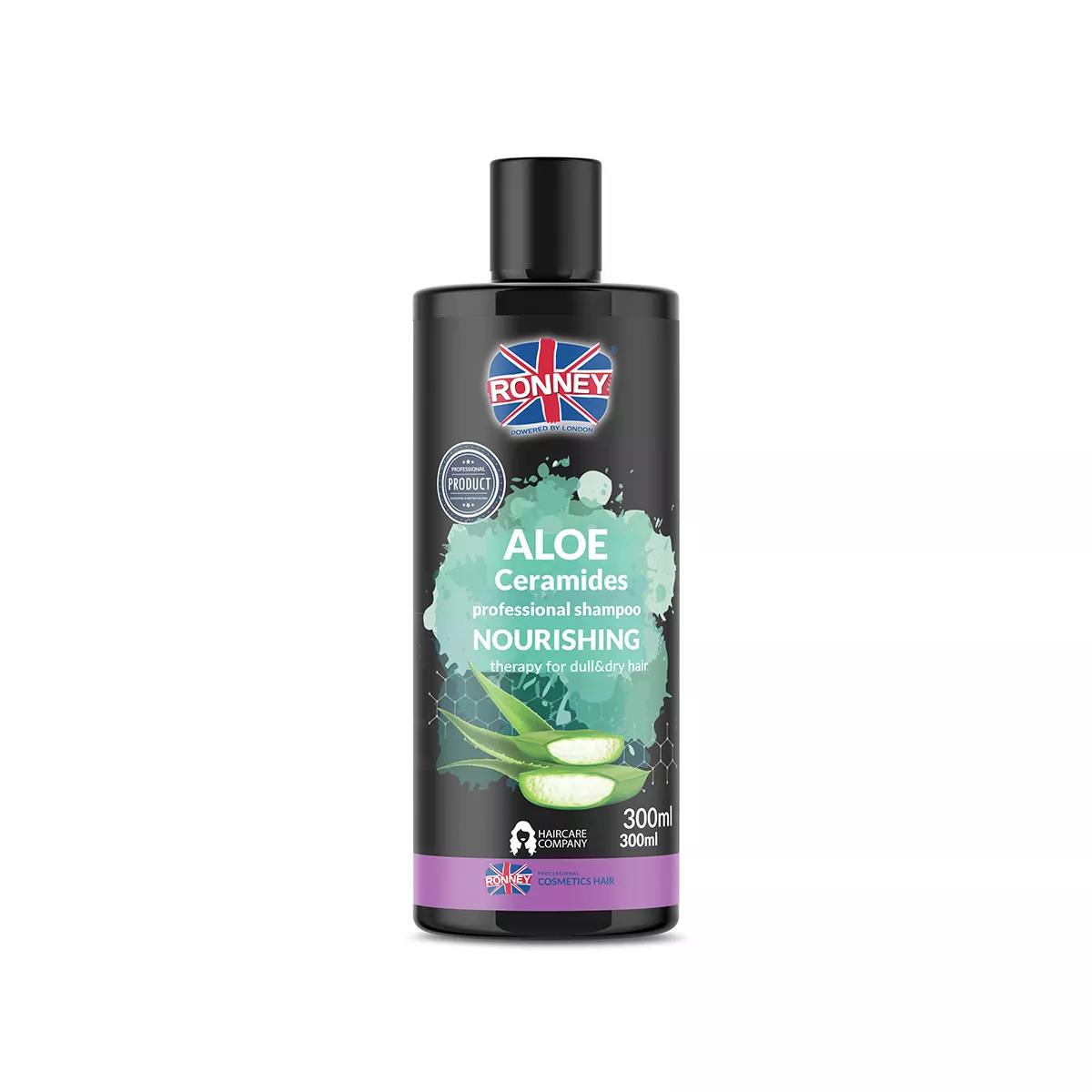 Ronney Professional Shampoo Nourshing Aloe Ceramides to szampon nawilżający przeznaczony do włosów matowych i suchych. Dzięki unikalnej formule z aloesem i ceramidami, doskonale odżywia, nawilża oraz odbudowuje barierę lipidową włosów. Po jego zastosowaniu włosy stają się sprężyste, elastyczne i pełne blasku.