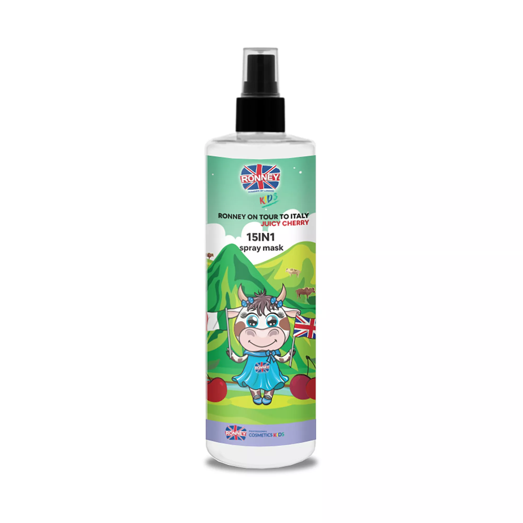 Ronney Spray do włosów splątanych i suchych o zapachu soczystej wiśni to idealne rozwiązanie dla włosów dziecięcych potrzebujących kompleksowej pielęgnacji. Produkt z serii Ronney Kids on Tour to Italy 15 in 1 Spray Mask oferuje uniwersalne właściwości, które pomagają w codziennej trosce o delikatne włosy młodych użytkowników.