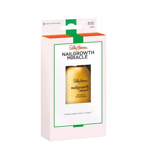Sally Hansen Nailgrowth Miracle to innowacyjna odżywka do paznokci, która pozwala uzyskać dłuższe paznokcie o 30% w ciągu zaledwie 5 dni. Dzięki unikalnej formule zawierającej białko sojowe, keratynę, kolagen oraz multiwitaminy, produkt wspomaga wzrost, wzmacnia oraz chroni paznokcie przed łamliwością i rozdwajaniem.