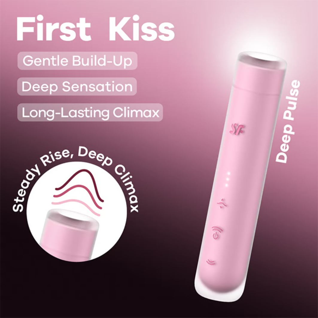Satisfyer First Kiss powietrzny stymulator Pink to innowacyjne urządzenie, które oferuje niezrównane doznania dzięki zaawansowanej technologii Deep Pulse. Zapewnia delikatne, stopniowo narastające przyjemności, które różnią się od intensywnej stymulacji klasycznych wibratorów Air Pulse. Pozwól sobie na chwilę relaksu, delektując się każdym momentem.