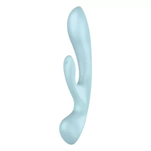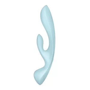 Satisfyer Triple Oh wielofunkcyjny wibrator Light Blue to innowacyjne urządzenie stworzone z myślą o intensywnej, wszechstronnej przyjemności. Dzięki wyjątkowej konstrukcji oraz trzem silniczkom, wibrator zapewnia jednoczesną stymulację łechtaczki, punktu G oraz relaksujący masaż miejsc intymnych lub innych wybranych obszarów ciała. Wodoodporność (IPX7) sprawia, że możesz korzystać z urządzenia także podczas kąpieli, a miękki, higieniczny silikon klasy medycznej gwarantuje bezpieczeństwo i delikatność dla skóry. 12 programów wibracyjnych pozwala na dopasowanie intensywności doznań do własnych preferencji, a wygodny, magnetyczny kabel USB umożliwia łatwe i ekologiczne ładowanie wbudowanego akumulatora.