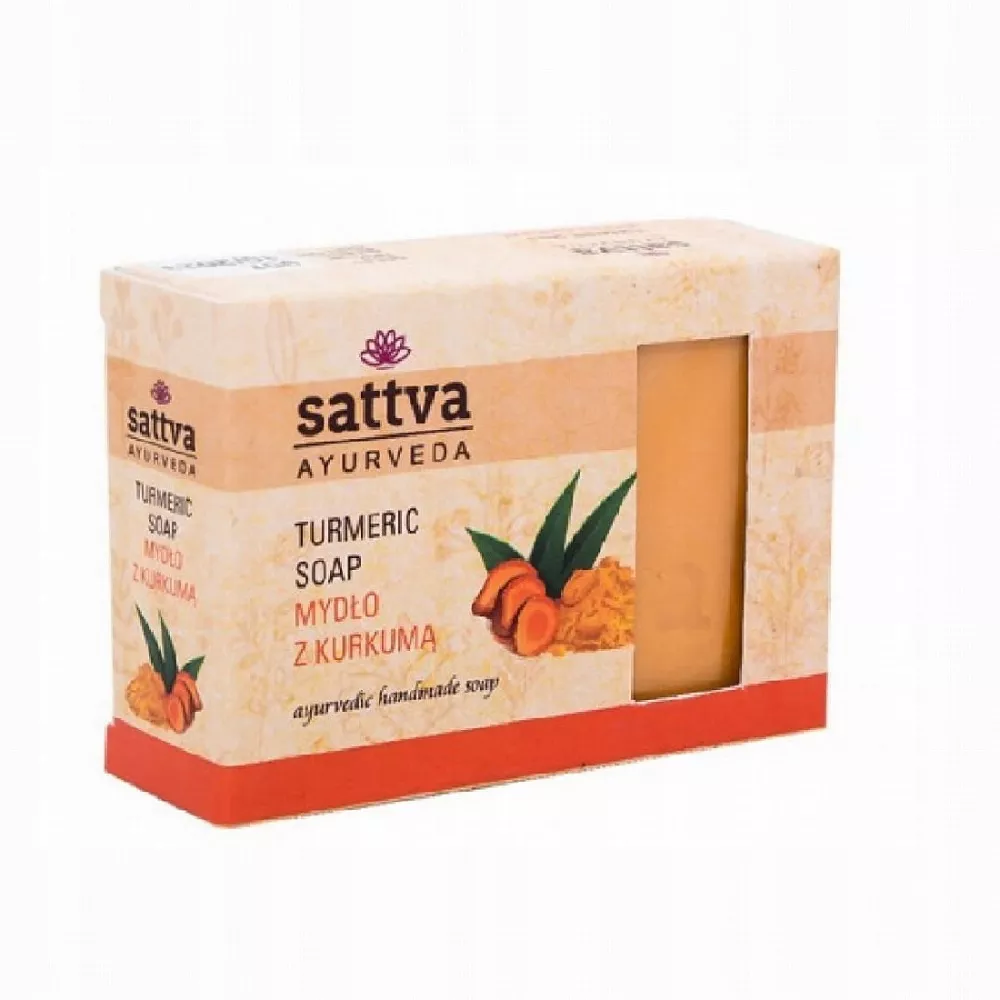 Odkryj naturalne piękno z Sattva Mydło handmade z kurkumą 125g. To wyjątkowe mydło łączy w sobie naturalne właściwości kurkumy, aloesu i oleju z oliwek, aby zapewnić Twojej skórze głębokie oczyszczenie i ochronę przed wolnymi rodnikami. Idealne dla osób szukających delikatnej pielęgnacji, która nawilża, wygładza i odżywia skórę twarzy oraz ciała, pozostawiając ją miękką, promienną i pełną blasku.