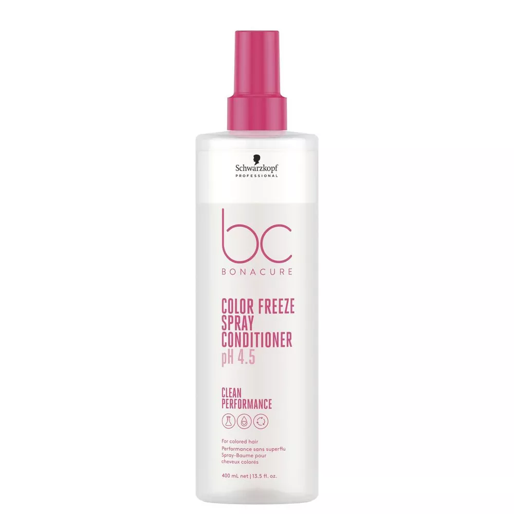Dwufazowa odżywka Schwarzkopf BC Color Freeze pH 4.5 to lekki kosmetyk, idealny do włosów farbowanych, rozjaśnianych i lekko porowatych. Składniki odżywcze wypełniają ubytki w korze włosów oraz w zewnętrznej warstwie. Dzięki temu włosy odzyskują elastyczność, są mocniejsze i lśniące. Przywrócenie równowagi pH z kolei sprawia, że kolor nie blaknie. Odżywka rozplątuje włosy, ożywia kolor i nadaje połysk. A do tego chroni przed negatywnym wpływem wysokiej temperatury podczas suszenia włosów.