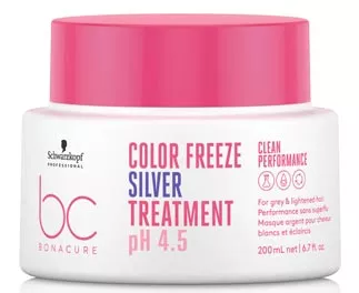 Maska do włosów blond Schwarzkopf BC Color Freeze Silver dzięki zawartości kwasu mlekowego i wodorotlenku wapnia, napina i stabilizuje macierz włosa przy optymalnym pH 4,5, aby głęboko zamrozić pigmenty barwnika wewnątrz macierzy włosa, zapewniając perfekcję koloru i efekt ochrony przed jego blaknięciem. To pierwszy wegański system blokowania koloru od Schwarzkopf Professional, który chroni kolor przed blaknięciem i przedłuża trwałość jego intensywności.