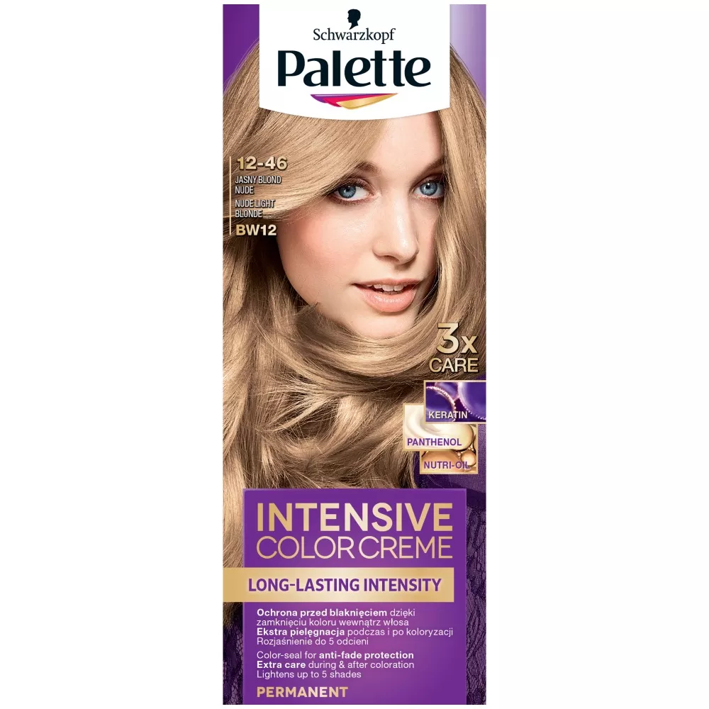 Odkryj intensywny i promienny blask dzięki farbie do włosów Schwarzkopf Palette Intensive Color Creme w odcieniu Jasny Blond Nude 12-46 (BW12). Ta wyjątkowa formuła zapewnia niewiarygodnie intensywne i długotrwałe kolory, które wibrują blaskiem. Produkty z serii Palette wnikają głęboko we włosy, zamykając w nich wysoce intensywne pigmenty i zapewniając fascynujący połysk.