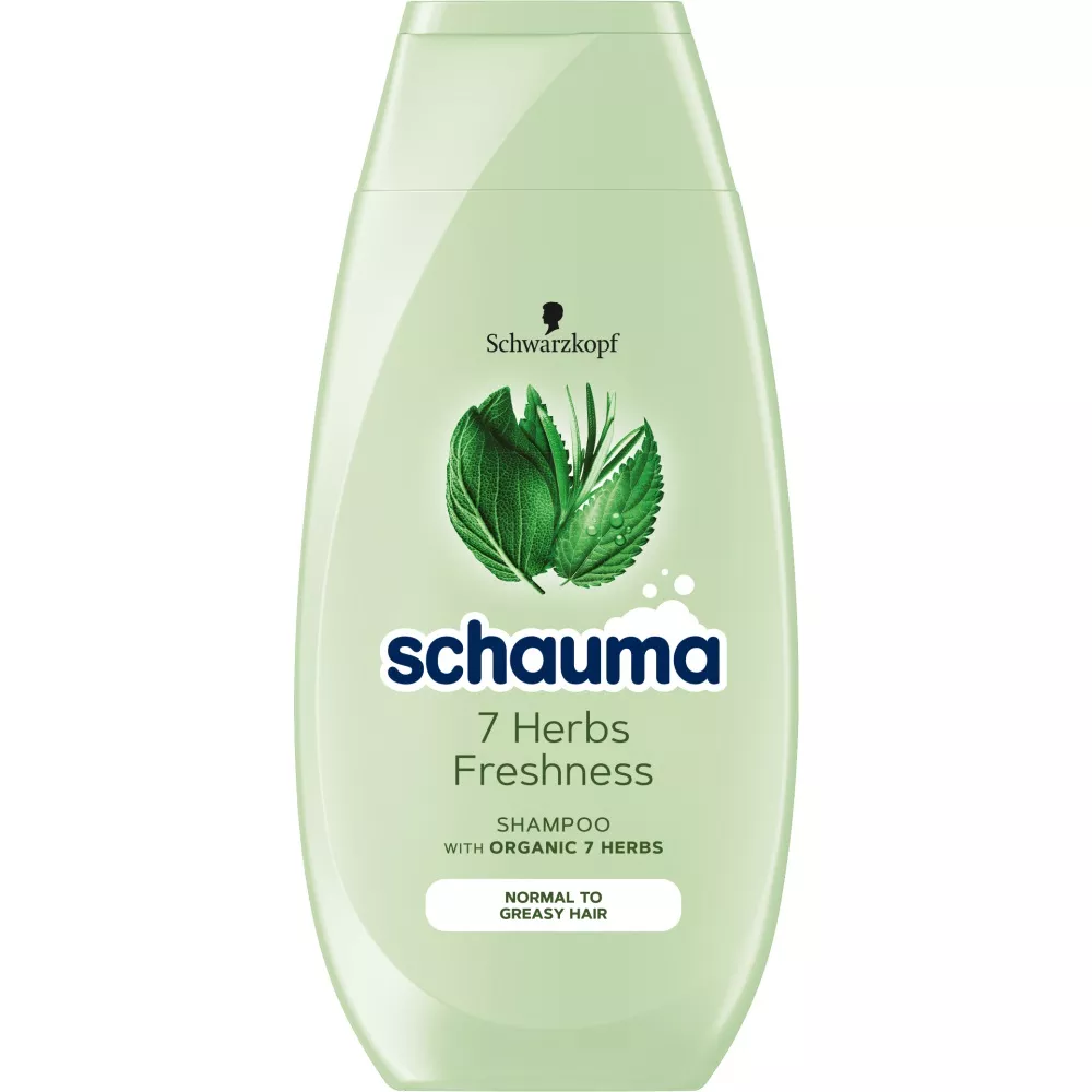 Czas na Schaumę! Szampon do włosów Schwarzkopf Schauma 7 Herbs Freshness to idealne rozwiązanie dla włosów przetłuszczających się i normalnych. Dzięki ekstraktowi z 7 organicznych ziół, takich jak rumianek, szałwia, melisa, skrzyp, chmiel i rozmaryn, wzmacnia włosy i nadaje im naturalną objętość oraz lekką świeżość. Ulepszona formuła otuli Twoje włosy gęstą pianą, wydobywając z nich to, co najlepsze, od nasady aż po same końce!
