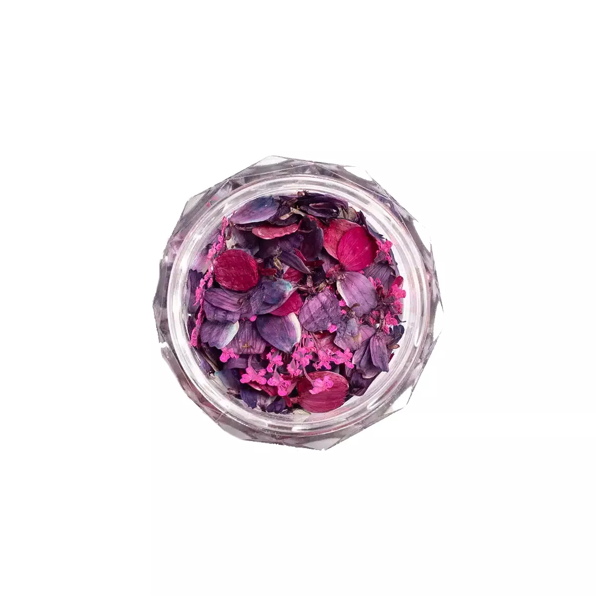 - Wyjątkowe suszone płatki kwiatów w głębokim odcieniu fioletu.