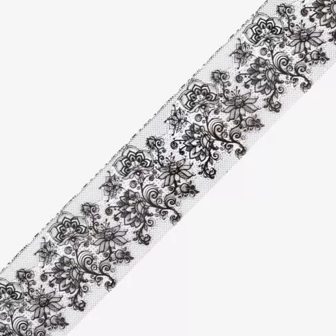 - Elegancki, koronkowy wzór w kolorze czarnym.