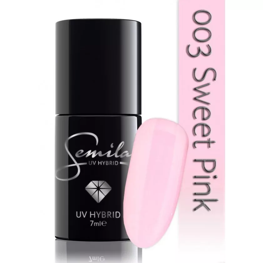 Semilac lakier hybrydowy 003 Sweet Pink to połączenie tradycyjnego lakieru do paznokci i żelu UV, co czyni go produktem wszechstronnym i trwałym. Dzięki zastosowaniu wysokiej jakości pigmentów, lakier zapewnia idealne krycie oraz doskonałą jakość wykończenia.