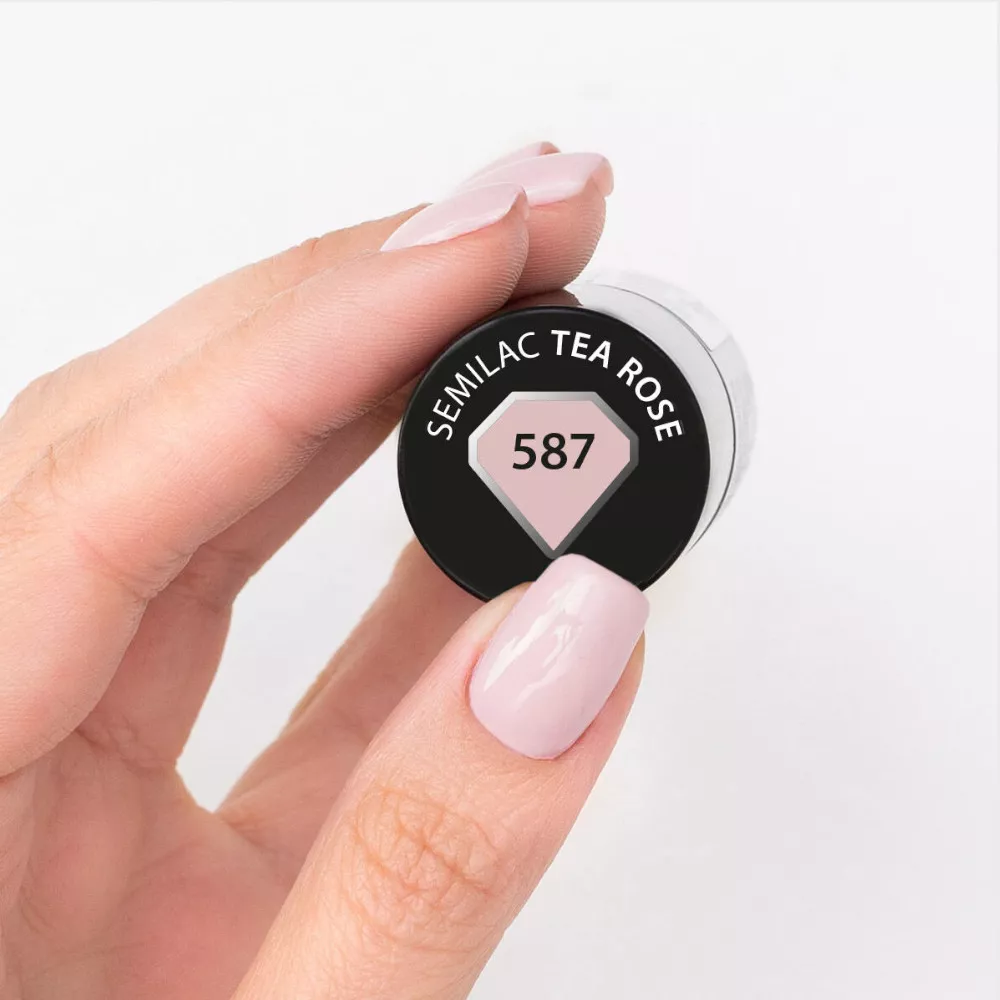 Semilac lakier hybrydowy 587 Tea Rose to wyjątkowe połączenie lakieru do paznokci i żelu UV. Dzięki zastosowaniu pigmentów wysokiej jakości, zapewnia doskonałe krycie i nieporównywalną jakość. Jego unikalny kolor, pudroworóżowy akord piwonii z nutą chłodnego beżu, podkreśli Twoją delikatność i urok, czyniąc manicure najpiękniejszym dodatkiem.