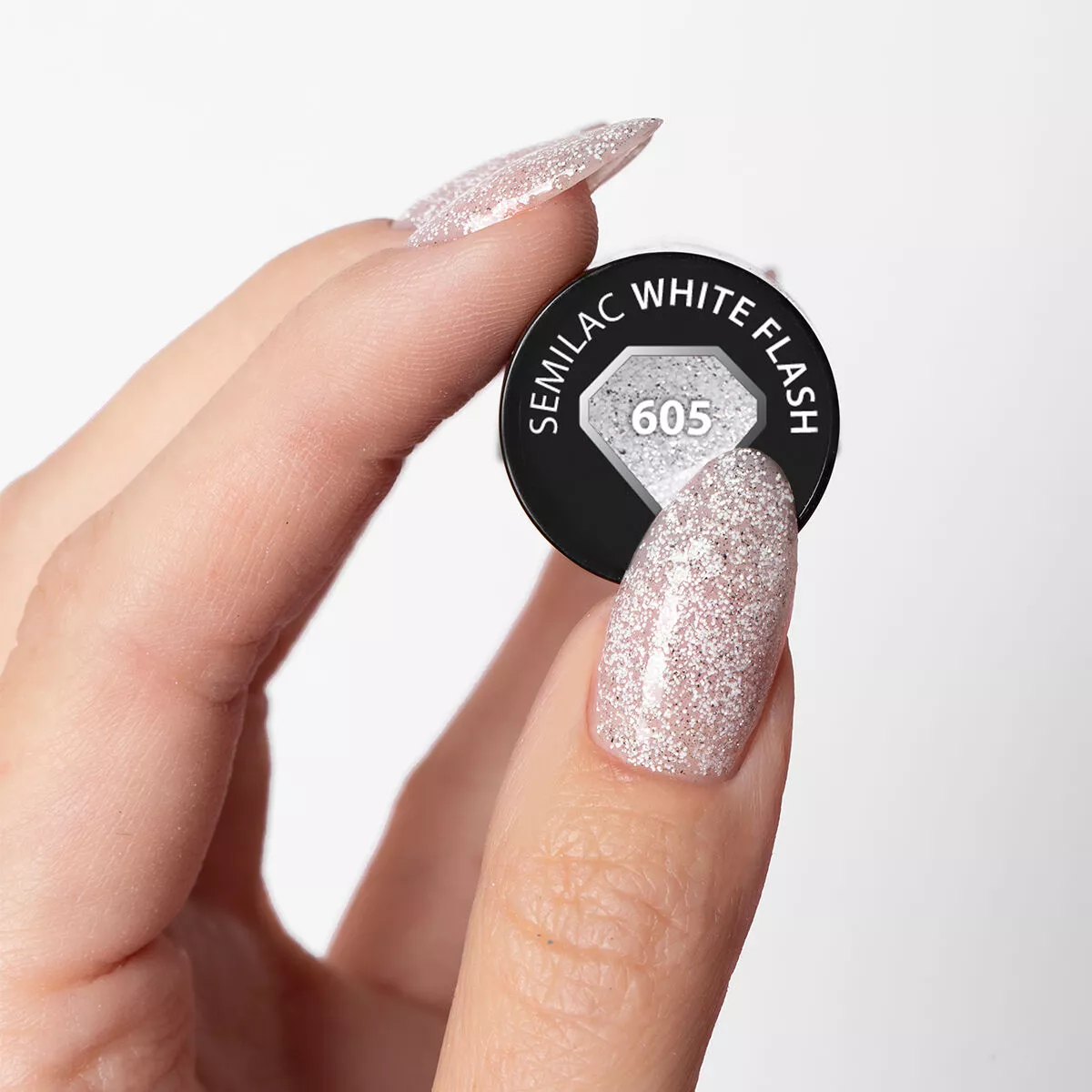Zalety lakieru hybrydowego Semilac 605 White Flash:
