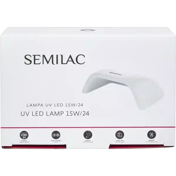 Semilac UV Lampa LED to profesjonalne urządzenie stworzone z myślą o utwardzaniu lakierów hybrydowych i żeli. Dzięki 24 diodom LED o mocy 15W zapewnia szybkie i równomierne utwardzanie, co czyni ją idealnym wyborem zarówno dla profesjonalistów, jak i amatorów pięknych paznokci. Lampa oferuje trzy tryby czasowe: 30, 60 i 90 sekund. Wyposażona w czujnik ruchu, automatycznie włącza się po włożeniu dłoni. Jej kompaktowe wymiary (19 x 15 x 8 cm) oraz lekka konstrukcja (0,5 kg) sprawiają, że jest łatwa w obsłudze i przenoszeniu. Elegancki biały design pasuje do każdego wnętrza, a wyjmowany spód ułatwia czyszczenie i konserwację.