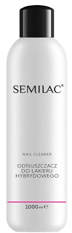 Semilac Nail Cleaner to niezastąpiony płyn do odtłuszczania i przemywania, idealny do pielęgnacji żelu UV, narzędzi, lamp, pojemników i stanowisk pracy. Dzięki swoim unikalnym właściwościom, nie niszczy lakierowanych powierzchni, zapewniając doskonałą spoistość tipsa z masą modelującą. Skutecznie usuwa lepką warstwę, która powstaje na utwardzonym żelu w lampie UV.