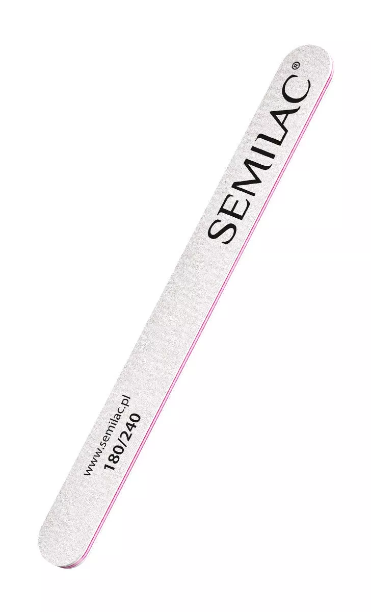 Dwustronny pilnik Semilac o gradacji średnio drobnoziarnistej to idealne narzędzie do pielęgnacji paznokci. Zawiera stronę o gradacji 180, która umożliwia nadanie paznokciom pożądanej długości i kształtu, oraz średnioziarnistą 240, służącą do matowienia paznokci naturalnych i wykonywania prac wykończeniowych na żelu lub akrylu. Dzięki swojemu prostemu kształtowi jest niezwykle wielofunkcyjny, pozwalając na opracowanie zarówno paznokci naturalnych, jak i przedłużanych. Produkt wykonany jest z najwyższej jakości surowców.