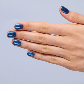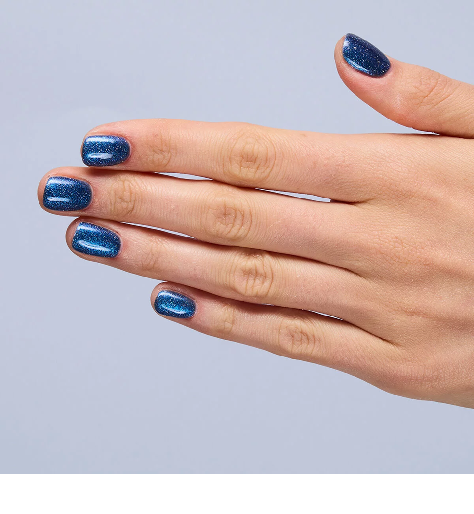- Wielowymiarowy odcień głębokiego granatu z holograficznym pyłem