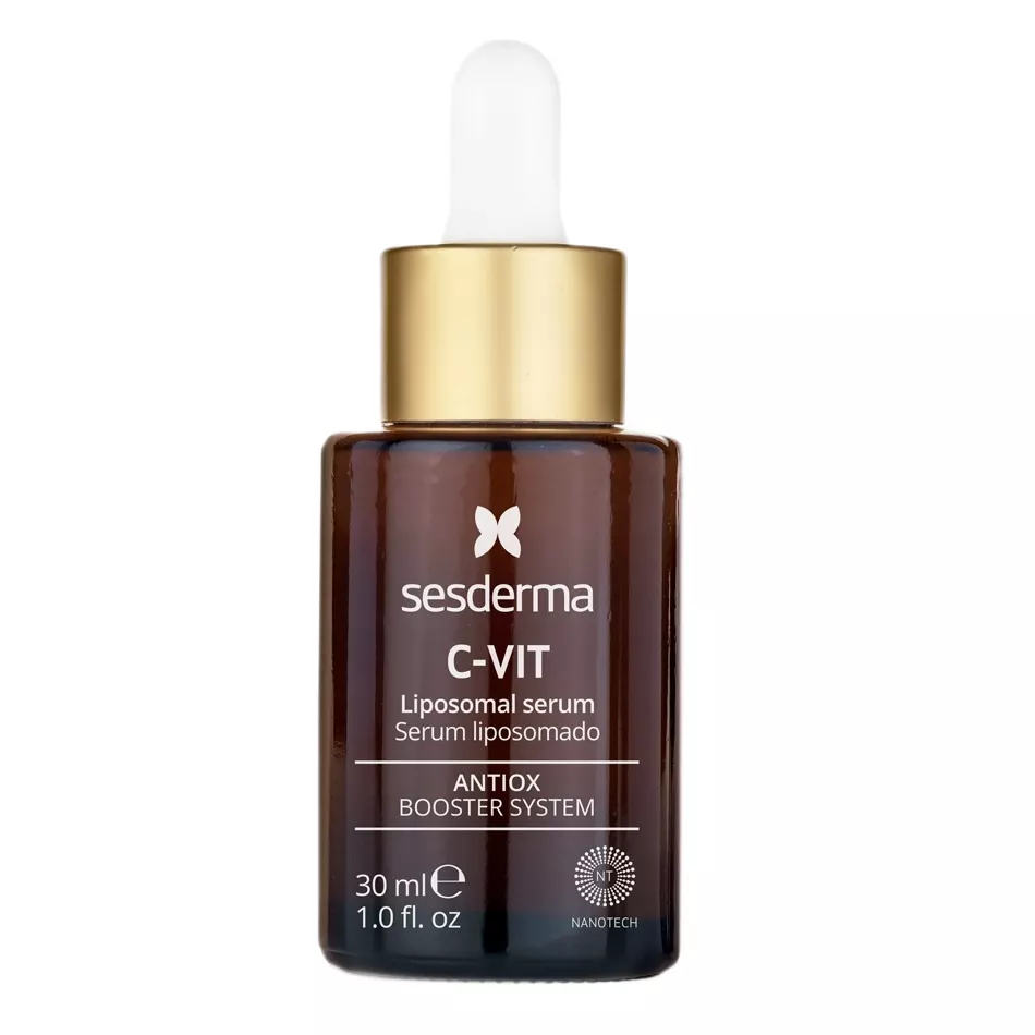 Sesderma C-Vit serum liposomowe 30ml to intensywna kuracja przeciw fotostarzeniu skóry, odpowiednia dla wszystkich typów skóry, w tym skóry trądzikowej oraz z trądzikiem różowatym. Serum zawiera koncentrat substancji wspomagających skuteczność kuracji przeciwstarzeniowych i depigmentacyjnych. Dzięki zastosowaniu nanotechnologii, liposomowe serum z najbardziej stabilną formą witaminy C (3-O-etylowy kwas askorbinowy) jest odporne na utlenianie i przenika do głębszych warstw skóry.