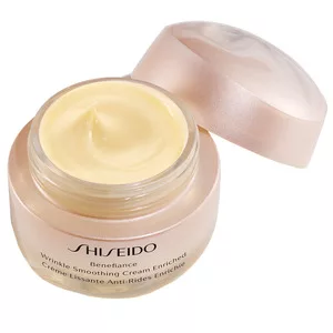 Shiseido Benefiance Wrinkle Smoothing Cream Enriched to luksusowy krem wygładzający zmarszczki, który zapobiega przedwczesnemu starzeniu się skóry i nadaje jej młodzieńczy wygląd. Ten wzbogacony krem dogłębnie nawilża skórę, przenikając w najdrobniejsze linie, co pomaga zminimalizować widoczność zmarszczek.