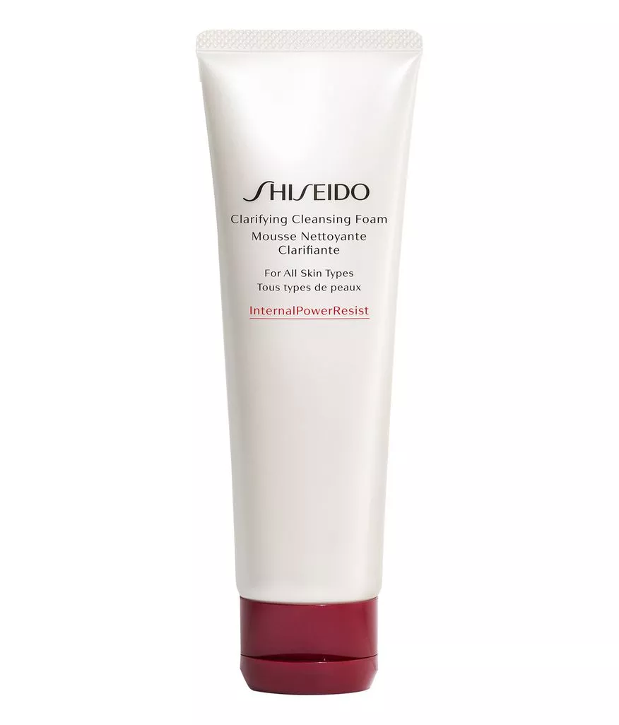 Shiseido Clarifying Cleansing Foam to oczyszczająca pianka stworzona z myślą o pielęgnacji każdego rodzaju cery. Produkt ten doskonale oczyszcza i rozświetla skórę, jednocześnie ją nawilżając i balansując, przygotowując ją do dalszych zabiegów pielęgnacyjnych. Zawiera Kirishima Mineral Spring Water, która pomaga uzupełnić niedobór minerałów, oraz olej z kiełków ryżu, który zmiękcza i otula skórę woalem nawilżenia. Ekstrakt z Yomogi zapobiega szorstkości, zapewniając skórze promienny wygląd. Dzięki technologii InternalPowerResist z ImuCalm Compound™ produkt wzmacnia barierę ochronną skóry, a ekstrakt z oczaru wirginijskiego silnie działa antyoksydacyjnie. Pianka jest testowana dermatologicznie.