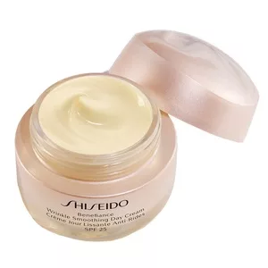 Shiseido Wrinkle Smoothing Day Cream SPF25 to krem na dzień, który skutecznie wygładza zmarszczki i zapobiega przedwczesnemu starzeniu się skóry. Produkt z serii Benefiance nadaje skórze młodzieńczy wygląd, głęboko ją nawilżając i minimalizując widoczność zmarszczek. Dodatkowo, krem zawiera filtr SPF25, który chroni skórę przed szkodliwym działaniem promieni słonecznych.