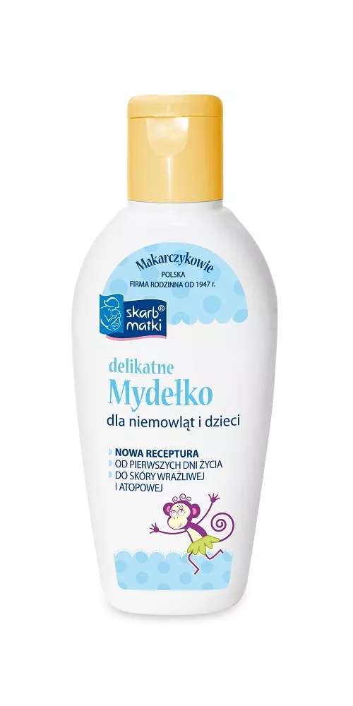 Skarb Matki Delikatne Mydełko dla niemowląt i dzieci od pierwszego miesiąca życia to wyjątkowy produkt stworzony z myślą o delikatnej i wrażliwej skórze najmłodszych. Jego formuła, oparta na pochodnej oliwy z oliwek oraz łagodnych substancjach myjących, zapewnia skuteczne oczyszczanie, jednocześnie natłuszczając i chroniąc skórę przed wysuszeniem.