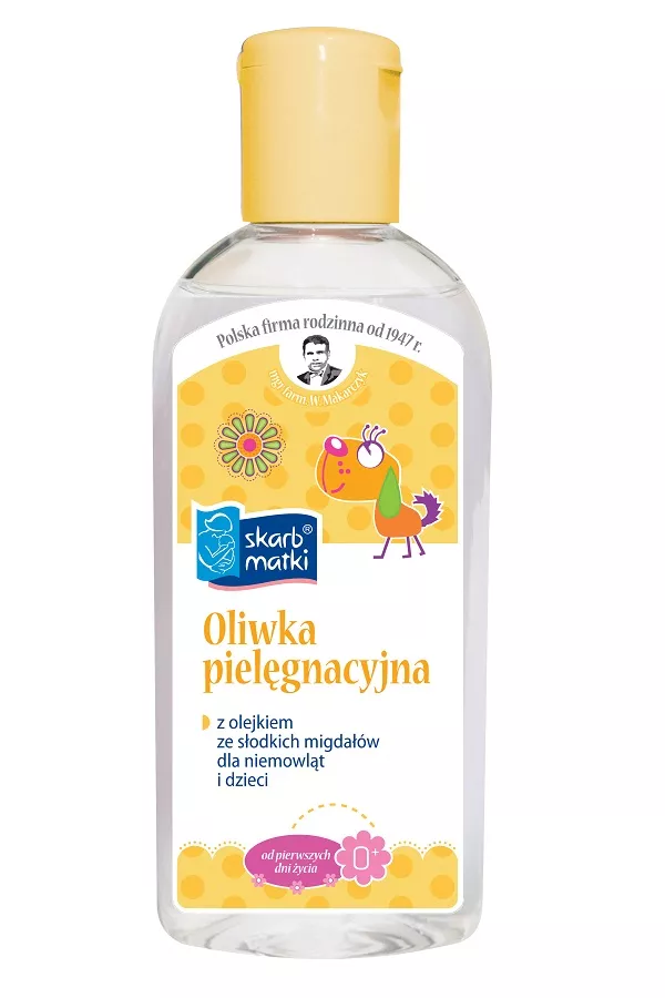 Oliwka pielęgnacyjna Skarb Matki z olejkiem ze słodkich migdałów to idealny wybór do codziennej pielęgnacji delikatnej i wrażliwej skóry niemowląt. Produkt jest szczególnie polecany do stosowania na skórę narażoną na nadmierne działanie wilgoci, odparzenia i otarcia. Oliwka skutecznie natłuszcza, nawilża i oczyszcza skórę dziecka przy każdej zmianie pieluszek, nie brudząc przy tym bielizny i dobrze się wchłaniając.