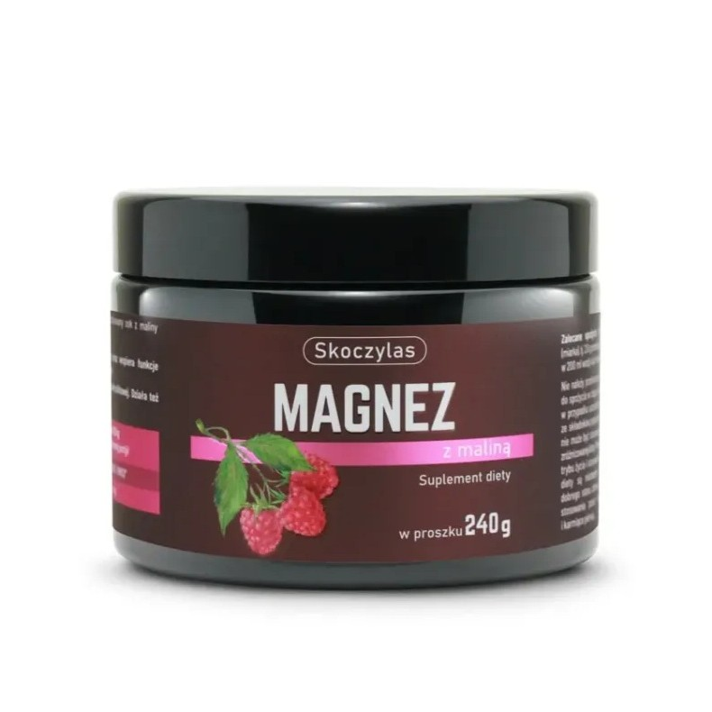 Skoczylas Magnez z maliną to wysokiej jakości suplement diety w proszku, który wspiera prawidłowe funkcjonowanie organizmu. Produkt zawiera magnez – minerał niezbędny do pracy mięśni, układu nerwowego oraz utrzymania równowagi elektrolitowej. Dzięki połączeniu z naturalnym smakiem malin, suplementacja staje się przyjemna i łatwa na co dzień.