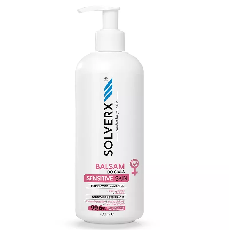 Balsam do ciała Solverx Sensitive Skin for Women to idealne rozwiązanie dla kobiet o wrażliwej skórze. Dzięki unikalnemu kompleksowi olejów z wiesiołka, lnianego, słonecznikowego oraz oliwy z oliwek, produkt zapewnia perfekcyjne natłuszczenie i intensywne nawilżenie.