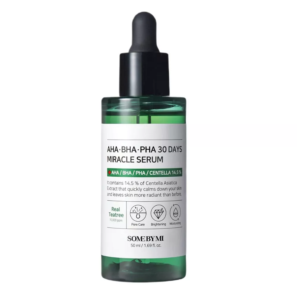 Some By Mi AHA.BHA.PHA 30 Days Miracle Serum to rewolucyjne serum stworzone z myślą o skórze trądzikowej. Dzięki zawartości 10 000 ppm ekstraktu drzewa herbacianego oraz 14,5% ekstraktu z wąkroty azjatyckiej, produkt ten łagodzi, nawilża i przyczynia się do zmniejszenia widoczności porów. Unikalne połączenie kwasów AHA, BHA i PHA skutecznie złuszcza martwe komórki naskórka i delikatnie usuwa nadmiar sebum, zapewniając gładką i promienną cerę.