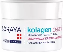 Soraya Kolagen+Ceramidy Odżywczy Krem Regenerujący 50 ml to zaawansowany kosmetyk do codziennej pielęgnacji twarzy, szyi i dekoltu. Wyjątkowa formuła oparta na kolagenie, ceramidach oraz maśle shea skutecznie poprawia jędrność i elastyczność skóry, jednocześnie dbając o jej głęboką regenerację i komfort. Krem szybko się wchłania, dzięki czemu doskonale sprawdza się zarówno pod makijaż, jak i jako krem ochronny w sezonie zimowym.