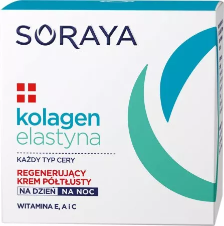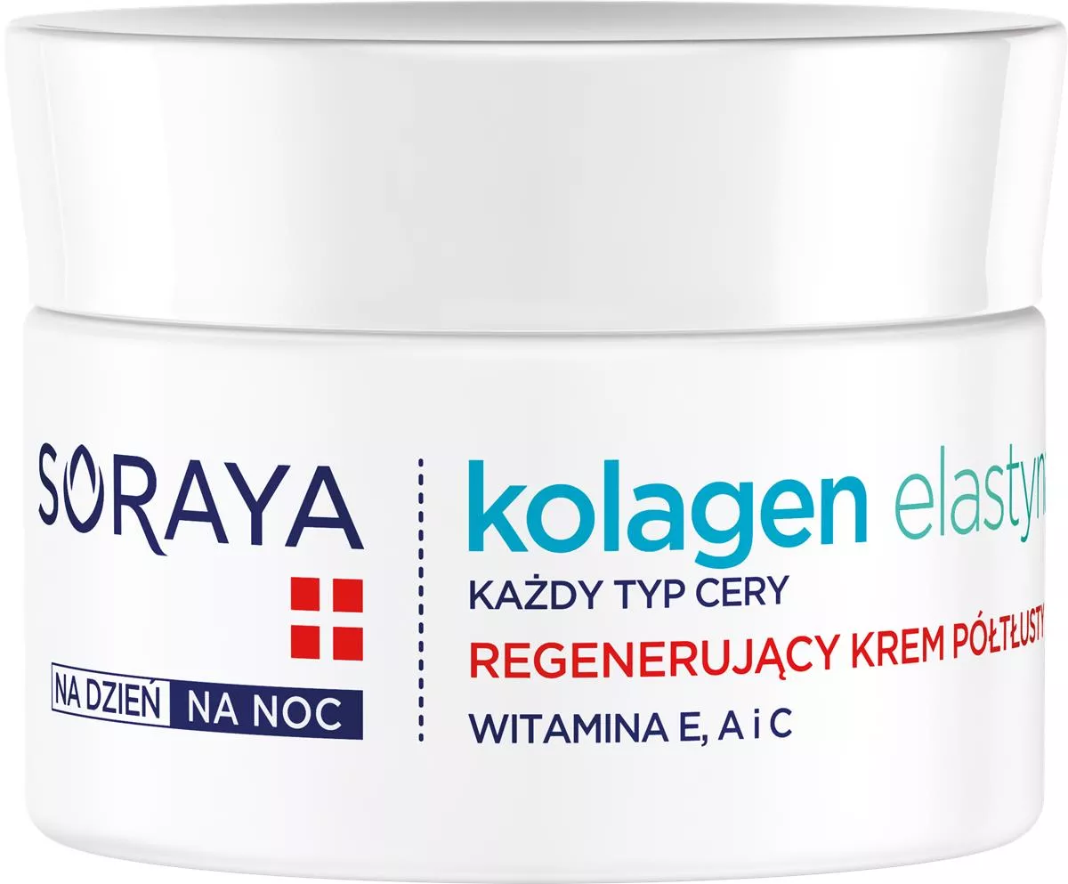 Soraya Kolagen+Elastyna Regenerujący krem półtłusty 50ml to wyjątkowy kosmetyk stworzony do codziennej pielęgnacji twarzy, szyi i dekoltu. Zaawansowana formuła oparta na kolagenie oraz elastynie skutecznie poprawia jędrność, elastyczność i gładkość skóry, przywracając jej młody wygląd. Wzbogacony o kompleks witamin C, A i E krem wyraźnie wygładza drobne zmarszczki, wspomaga regenerację komórek oraz wzmacnia barierę lipidową, chroniąc skórę przed przesuszeniem. Idealny do stosowania zarówno na dzień pod makijaż, jak i na noc, a także jako krem ochronny w okresie zimowym.