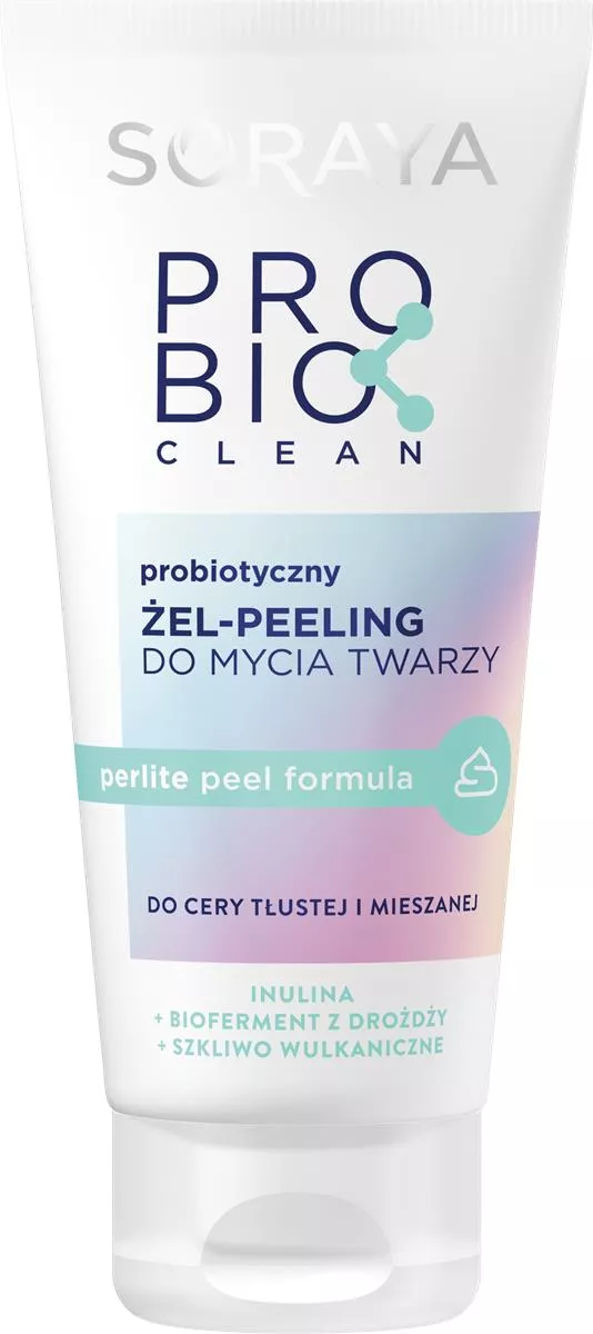 Soraya Probio Clean, probiotyczny żel-peeling do mycia twarzy do cery tłustej i mieszanej, to nowoczesna formuła, która wspiera mikrobiom skóry, delikatnie złuszcza oraz intensywnie oczyszcza. Produkt oparty jest na łagodnych substancjach myjących oraz naturalnych drobinkach eksfoliujących, dzięki czemu skutecznie usuwa zanieczyszczenia, odświeża i wygładza naskórek, przywracając cerze zdrowy wygląd oraz uczucie czystości.