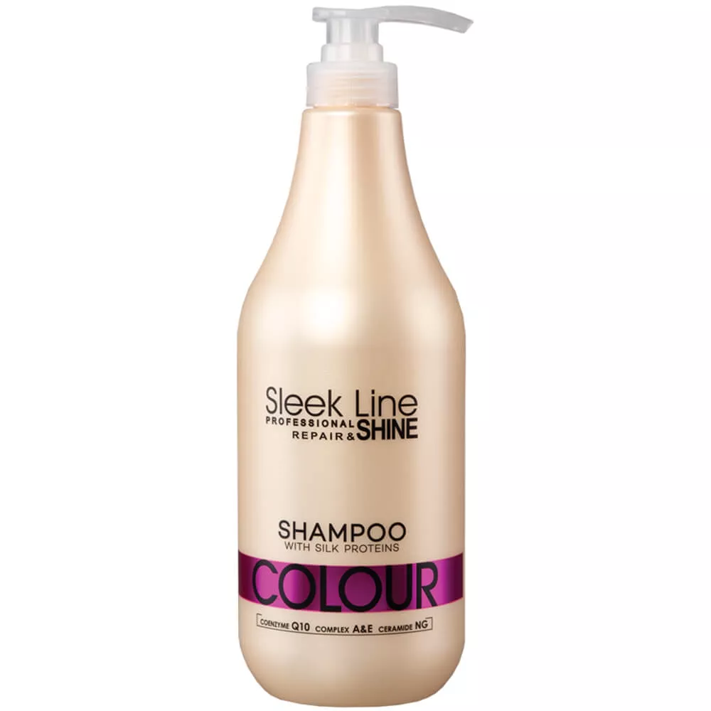 Stapiz Sleek Line Colour Shampoo to szampon z jedwabiem przeznaczony do pielęgnacji włosów farbowanych, dostępny w pojemności 1000 ml. Delikatnie myje włosy, jednocześnie intensywnie nawilżając ich strukturę. Podkreśla i wzmacnia kolor, nadając mu niesamowity blask.