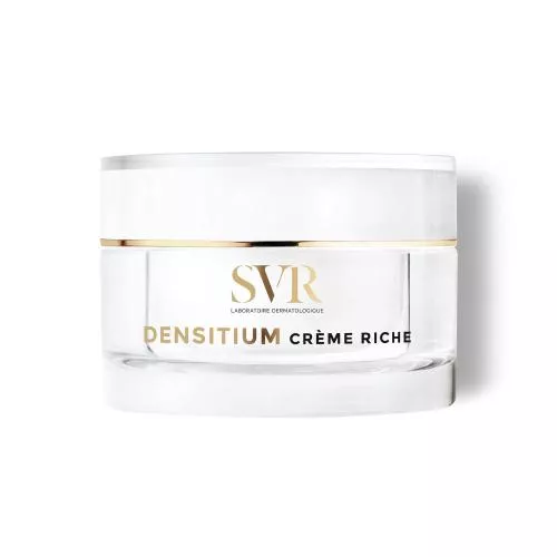 Odkryj innowacyjny krem SVR Densitium Creme Riche, który powstał z myślą o potrzebach dojrzałej i suchej skóry. Specjalnie opracowany, by wspierać skórę w okresie menopauzy, ten odżywczy krem przeciwzmarszczkowy skutecznie zwalcza oznaki starzenia, takie jak suchość, zmarszczki, zwiotczenie skóry, utrata blasku i jednolitości. Formuła wzbogacona o kwas hialuronowy i biowapń pomaga zagęścić skórę i wyraźnie poprawia kontury twarzy.