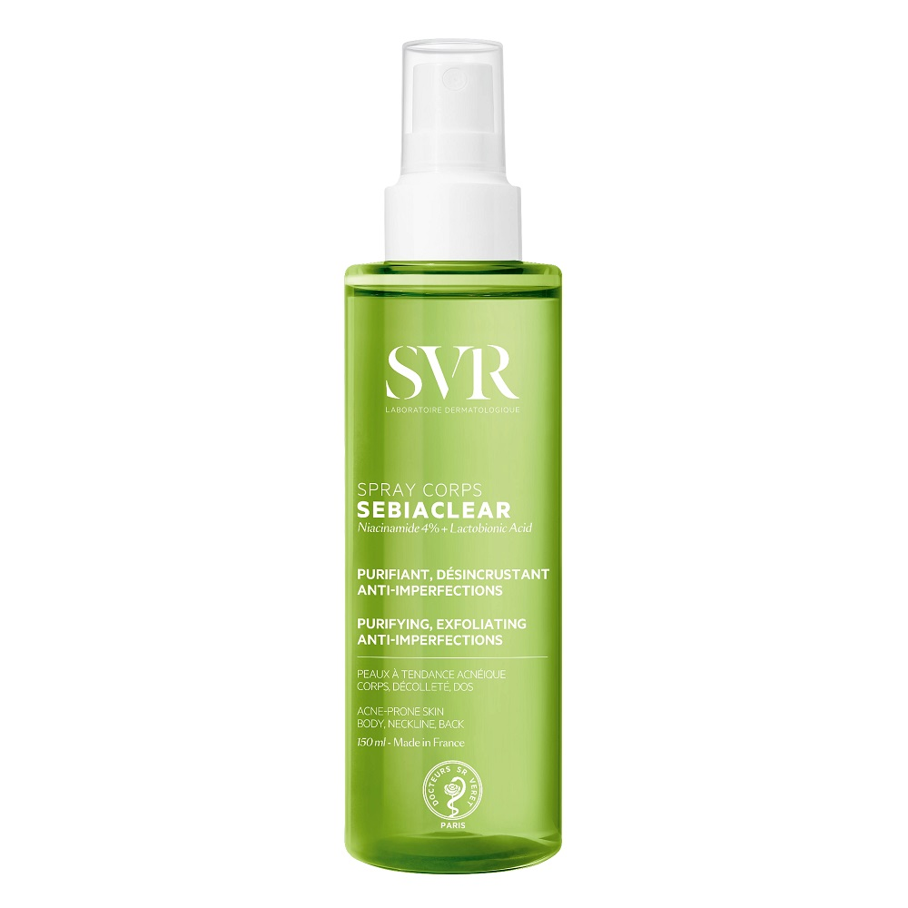 SVR Sebiaclear przeciwtrądzikowy spray do ciała 150ml to innowacyjny preparat przeznaczony do pielęgnacji skóry pleców, ramion i dekoltu ze skłonnością do trądziku. Zaawansowana formuła produktu zapewnia kompleksowe działanie: skutecznie redukuje zmiany trądzikowe, wygładza strukturę skóry oraz zapobiega powstawaniu nowych niedoskonałości. Już po 14 dniach regularnego stosowania możesz zauważyć aż o 40% mniej wyprysków¹, co pozwoli Ci cieszyć się zdrową, gładką skórą i większą pewnością siebie każdego dnia.