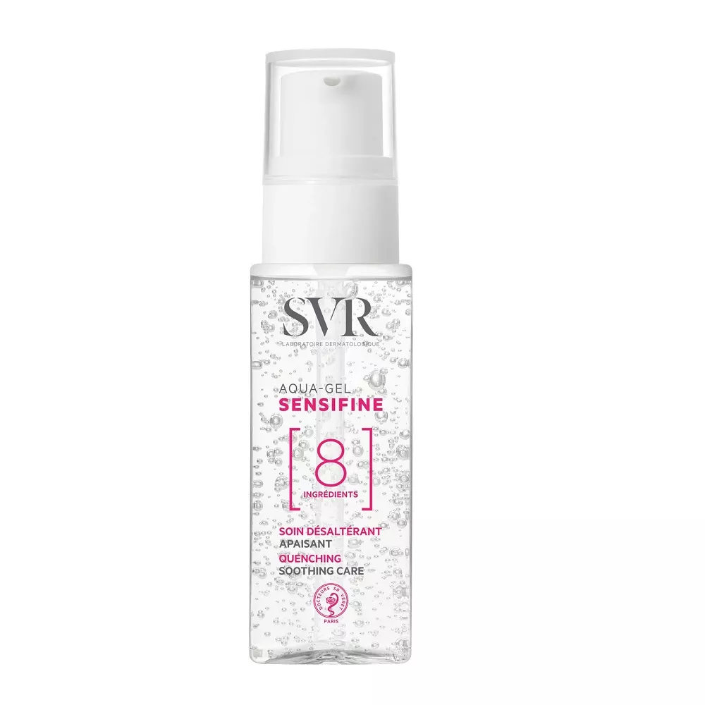 SVR Sensifine Aqua-Gel to kojący żel nawilżający przeznaczony do pielęgnacji skóry wrażliwej, polialergicznej, mieszanej i normalnej. Produkt łączy w sobie wysoką tolerancję, skuteczność oraz przyjemność stosowania, spełniając potrzeby najbardziej wymagającej skóry. Minimalistyczna formuła złożona z zaledwie ośmiu składników, z czego 97% jest pochodzenia naturalnego, została zaprojektowana, aby natychmiast ukoić i intensywnie nawilżyć delikatną i podrażnioną skórę.