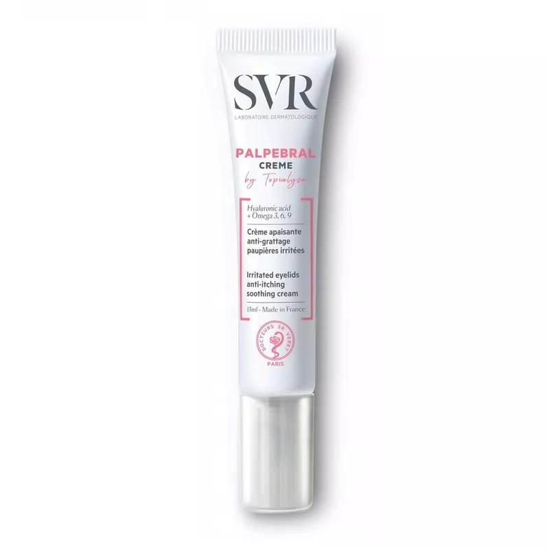 SVR Topialyse Palpebral to łagodzący krem stworzony specjalnie dla nadwrażliwych okolic oczu. Produkt zapewnia całodobowe nawilżenie, natychmiastowo koi oraz długotrwale łagodzi podrażnienia, ograniczając ich pojawianie się.