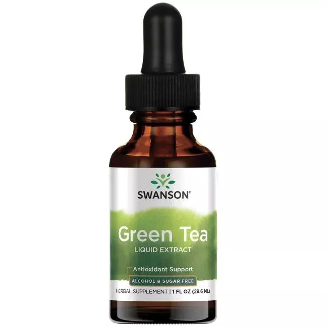 Swanson Green Tea liquid extract 29,6ml to wysokiej jakości suplement diety zawierający ekstrakt z zielonej herbaty, standaryzowany do 7,5% polifenoli, który wspomaga zdrowie układu sercowo-naczyniowego.